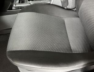 Передние сиденья новой конструкции (2019г) с продольной регулировкой и подогревом (оба кресла), с регулировкой по высоте для кресла водителя. Задние сиденья с подлокотником. Обивка комбинированная, темная (боковины кож.зам. и центральная вставка на подушке и спинке из ткани)
